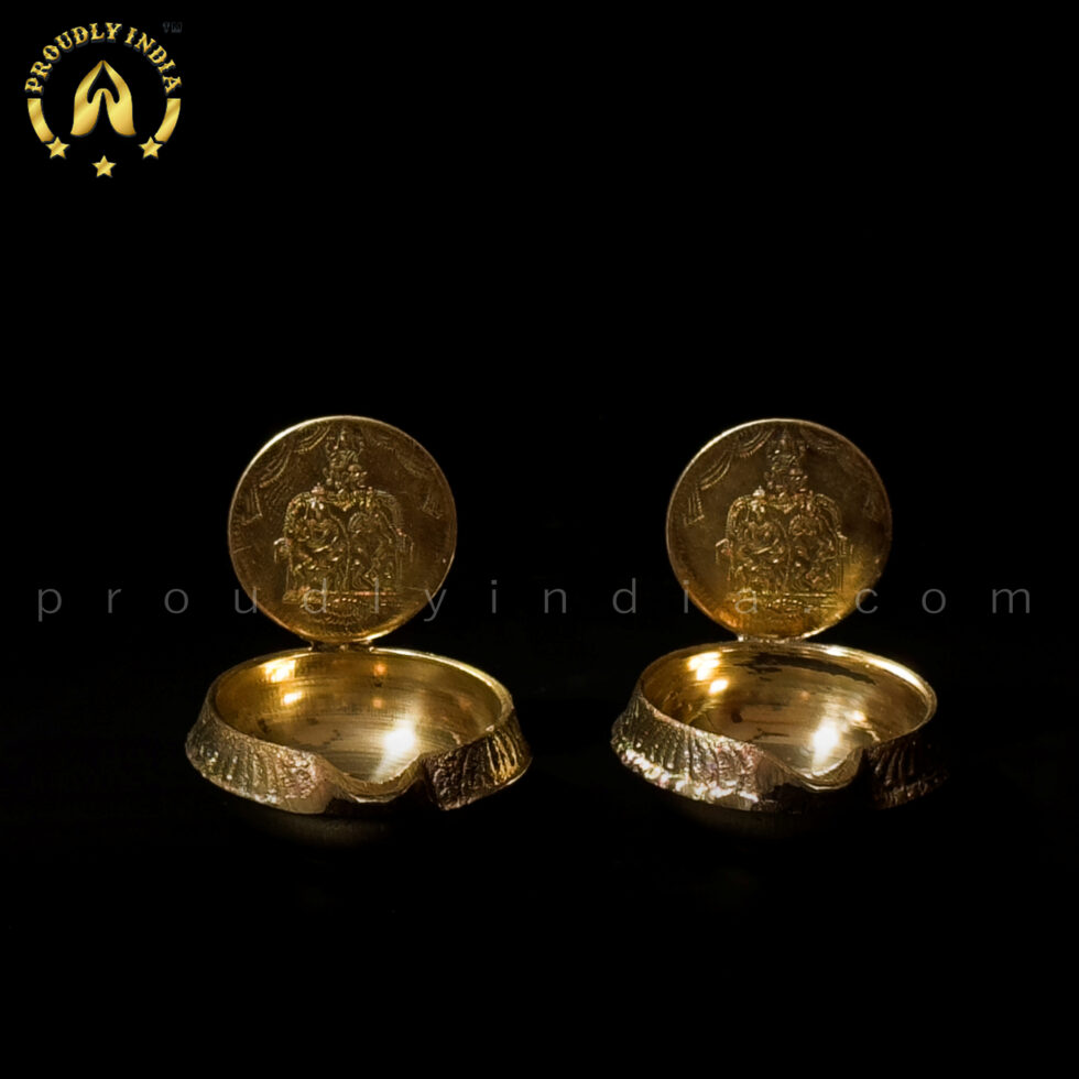 12 Kubera Lakshmi Deepam Oil Lamp with 12 Brass Coins