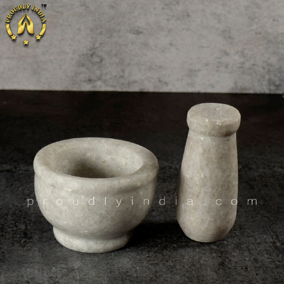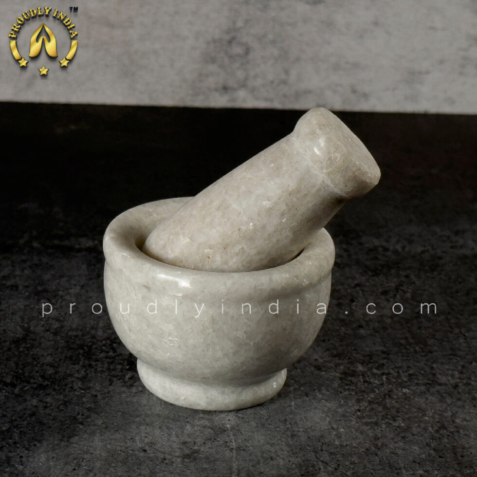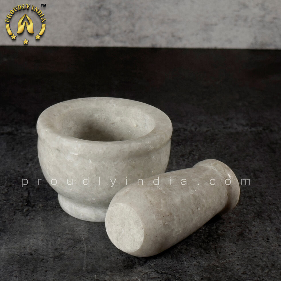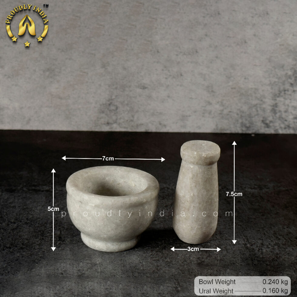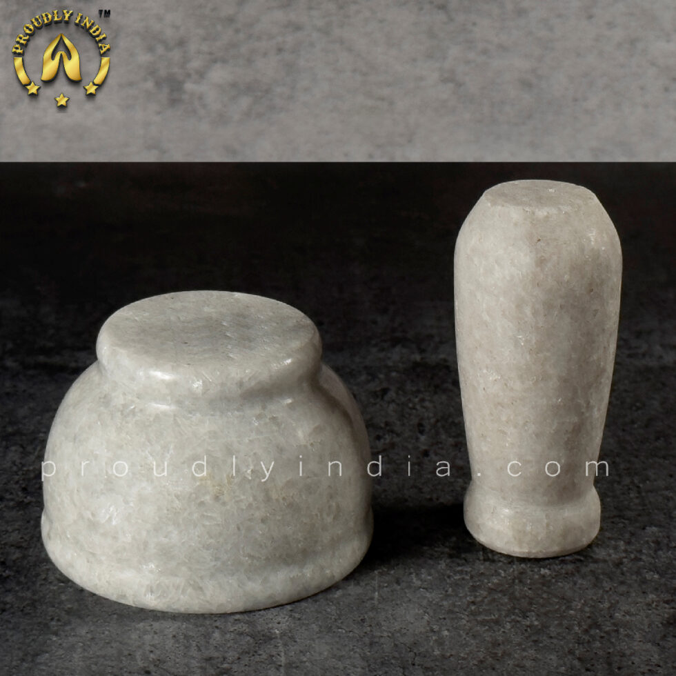 2.5 Inch White Marble Mortar Pestle | idikallu | Khalbatta | Molcajete