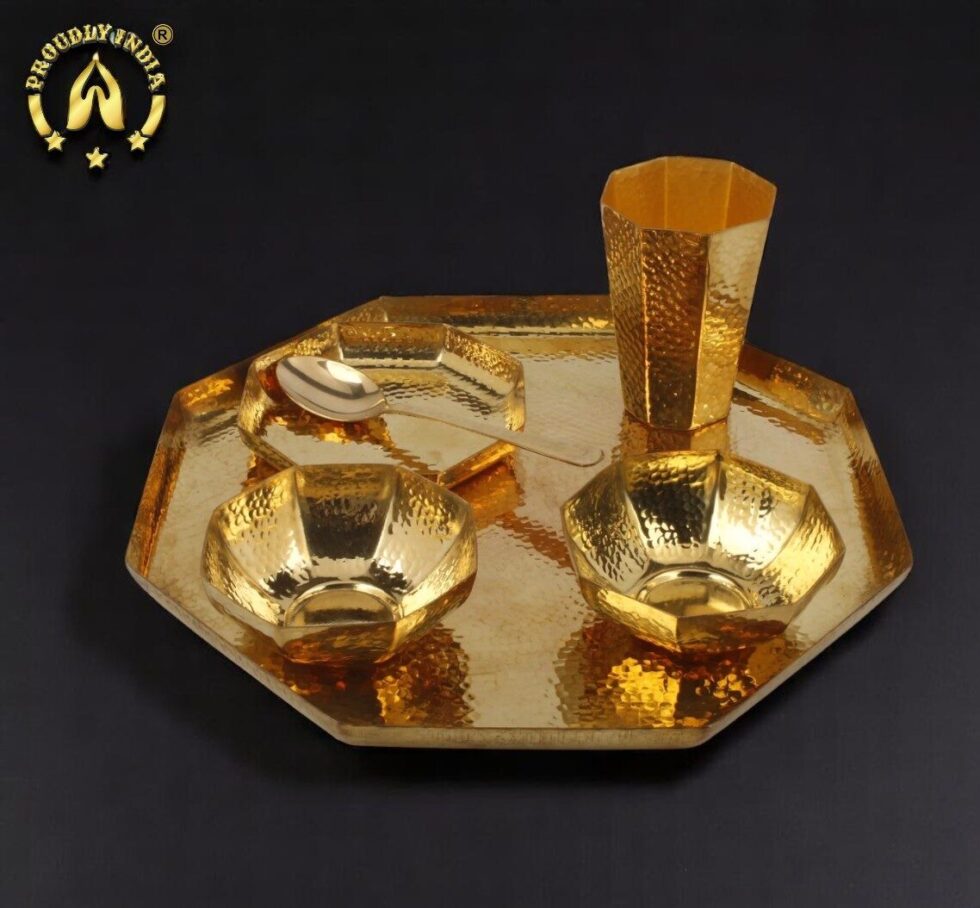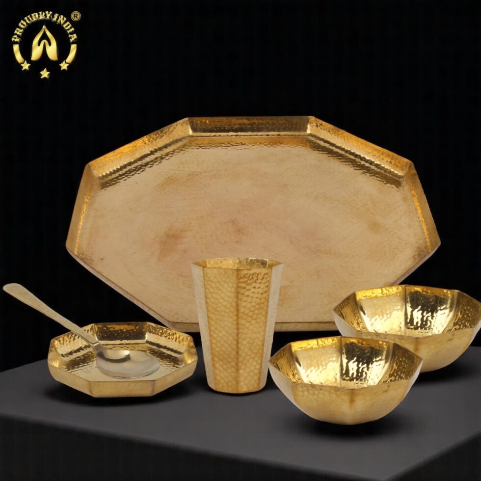 6 Piece Hexagon Brass Thali Set