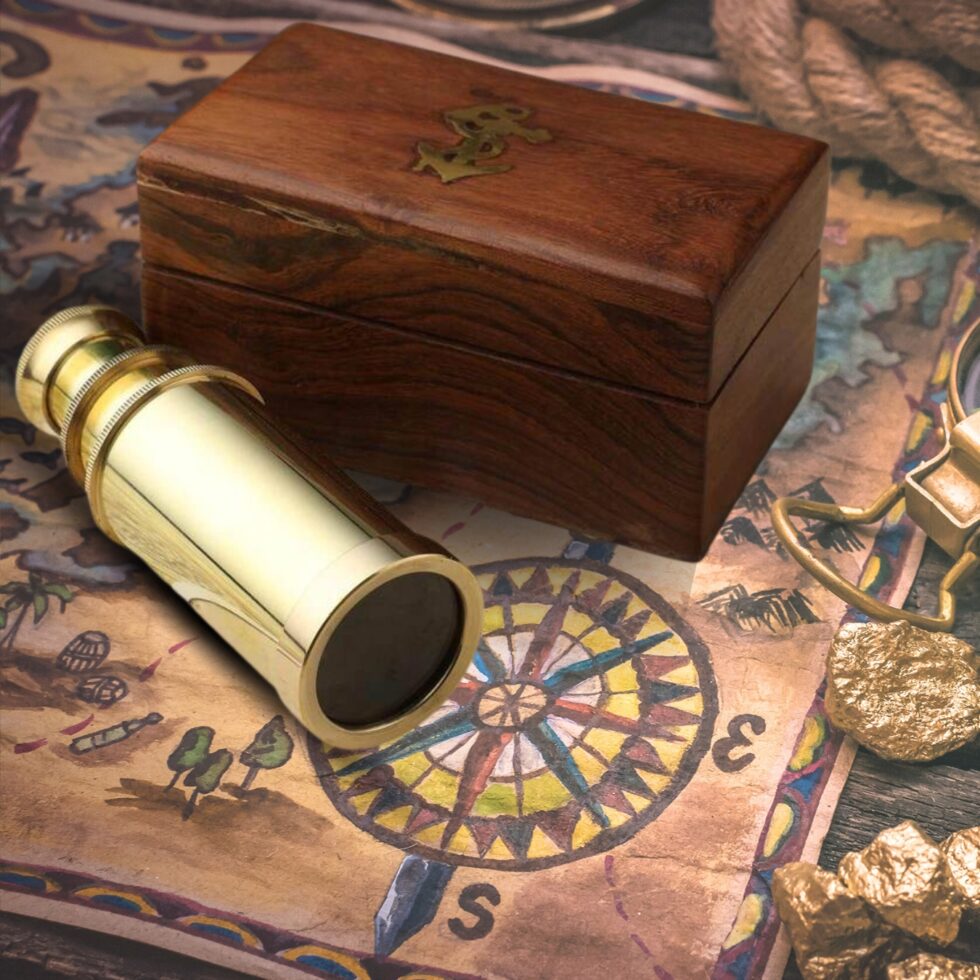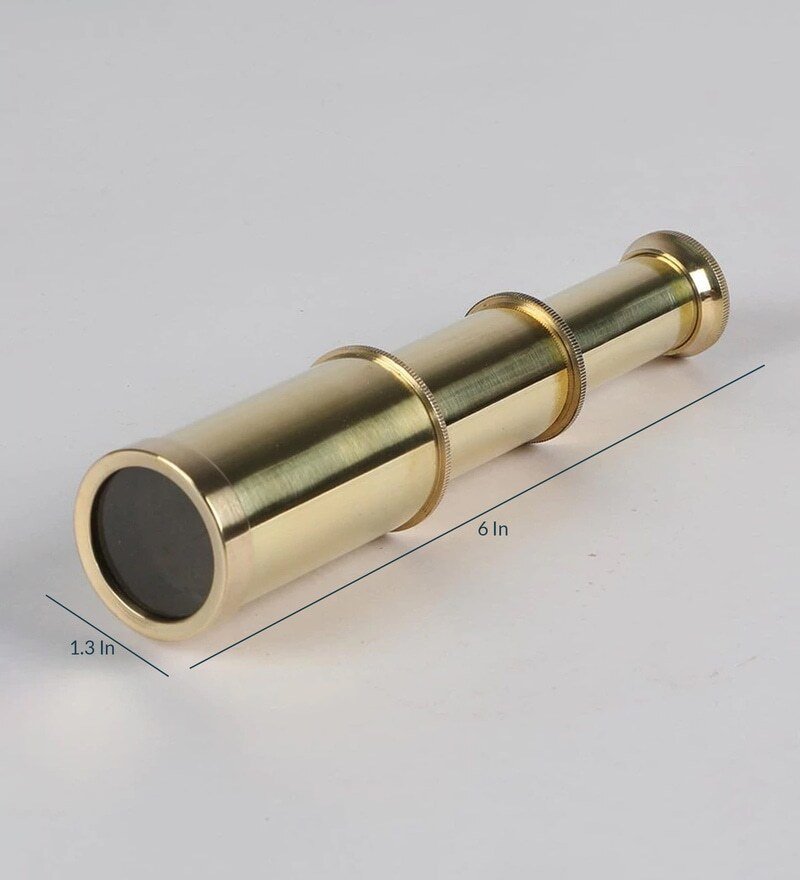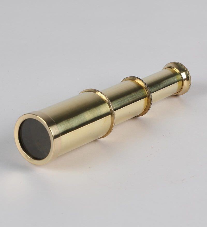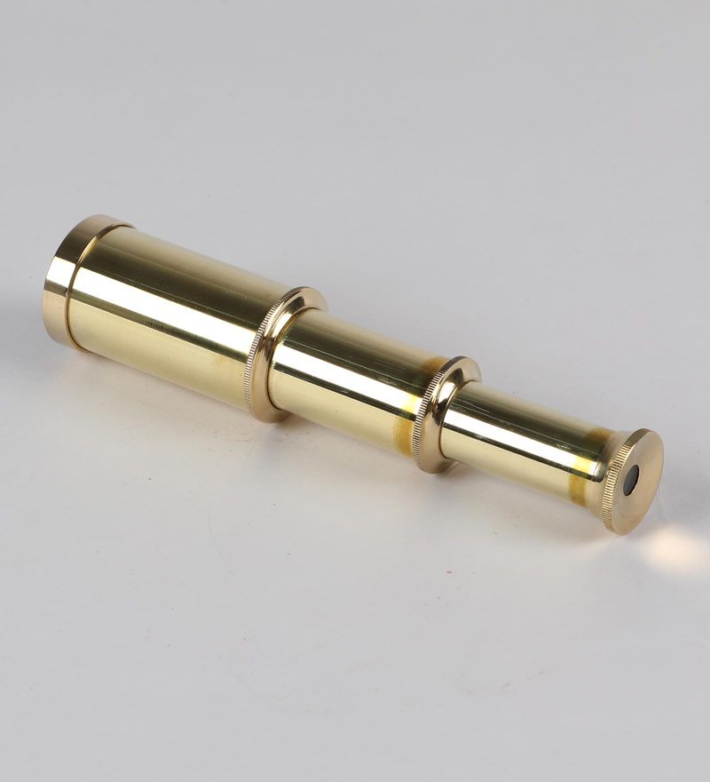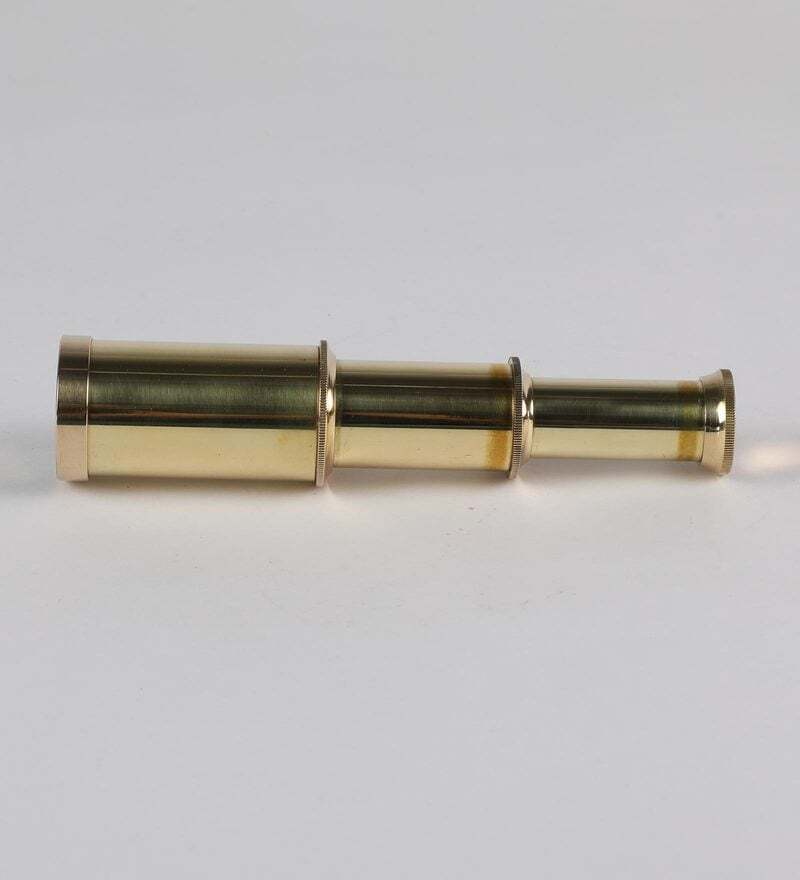 Antique And Compact Gold Finish Brass Telescope In Box 85.00
