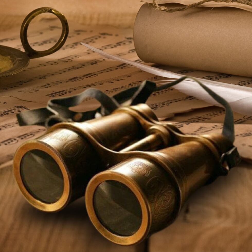 Brass Carved Binoculars With Leather Pouch