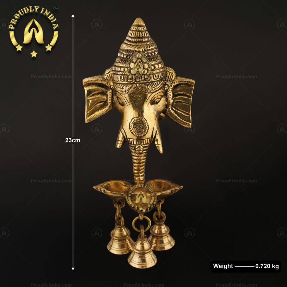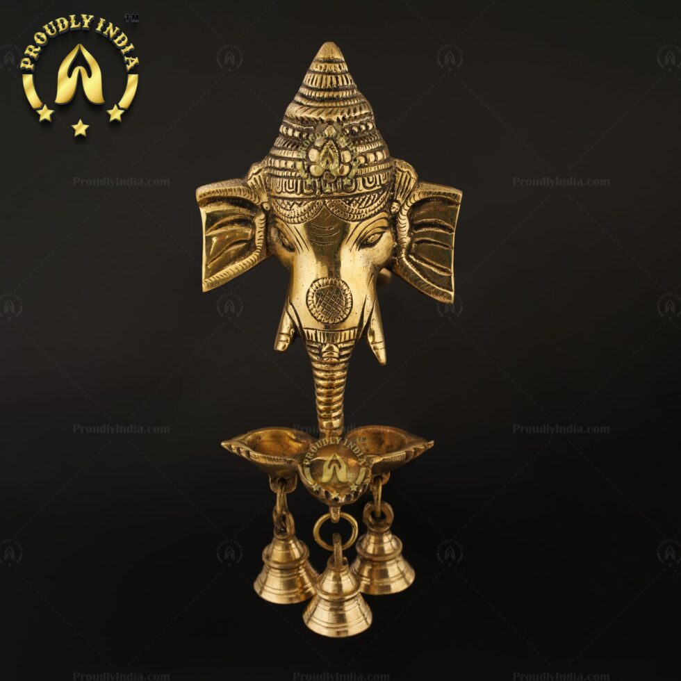 Brass Wall Hanging Ganesh Mask with Deepam