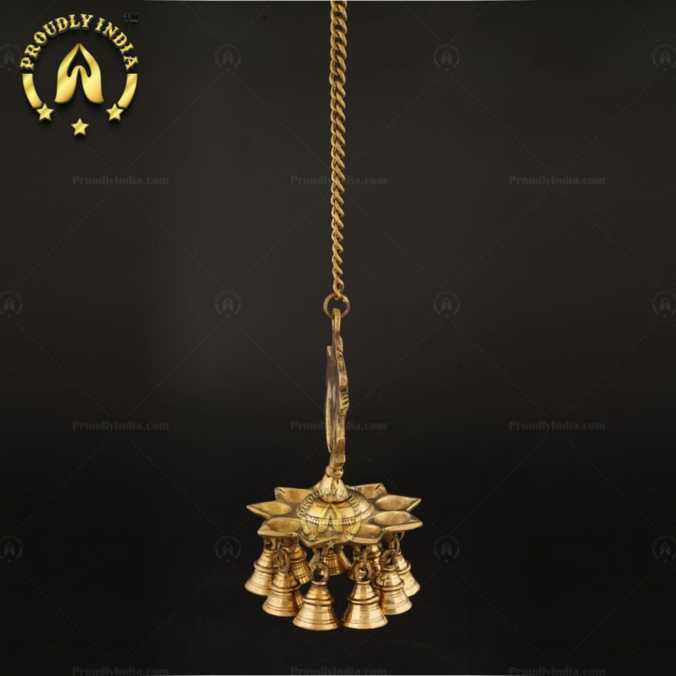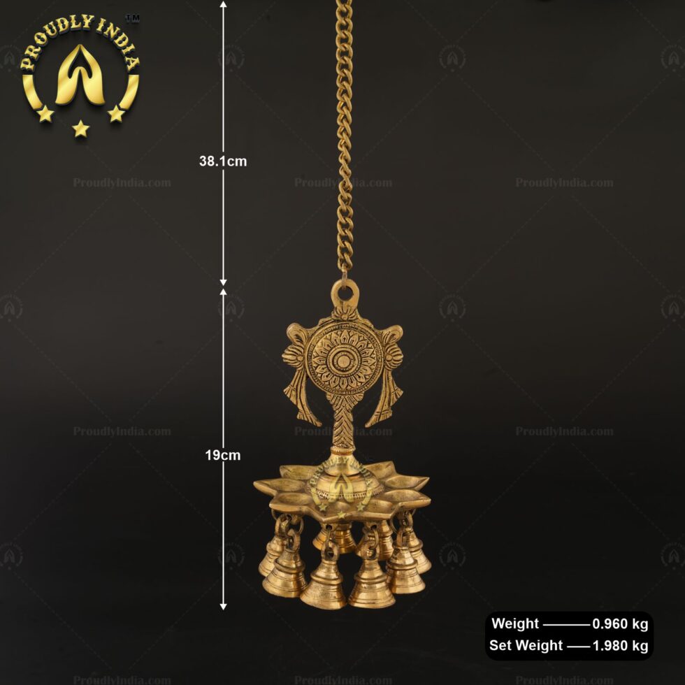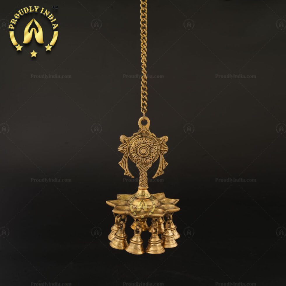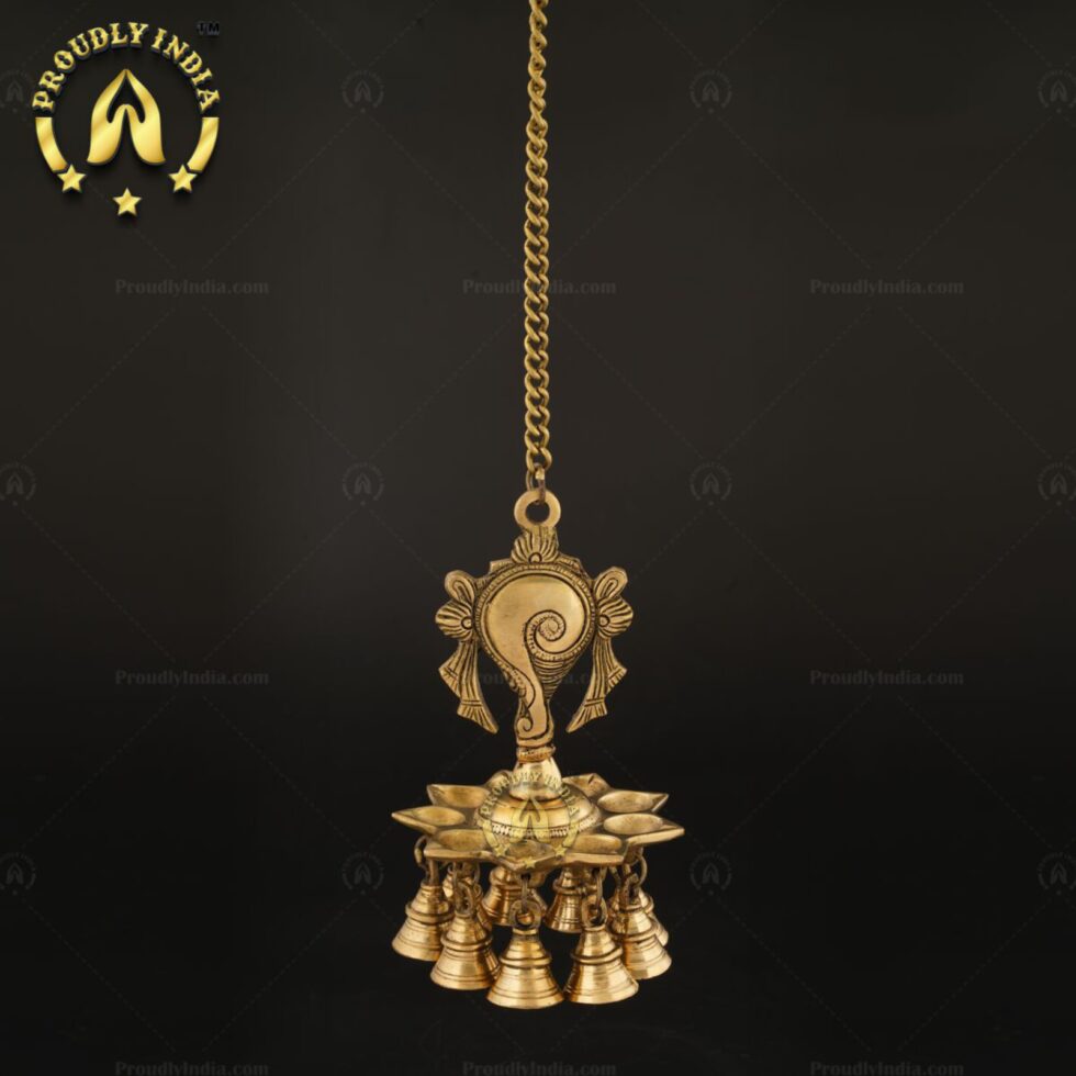 Brass Wall Hanging Sanghu Chakra 9 Wicks Diya With Bell 179.00