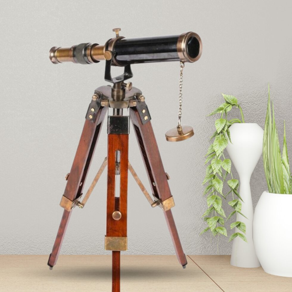 Brown And Brass Telescope With Tripod Stand