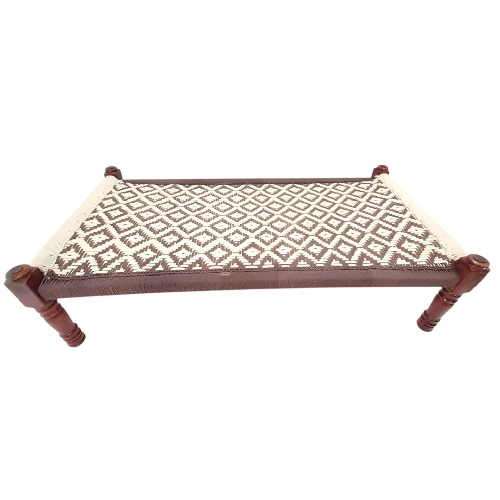 Brown and White Pattern Wooden Charpai