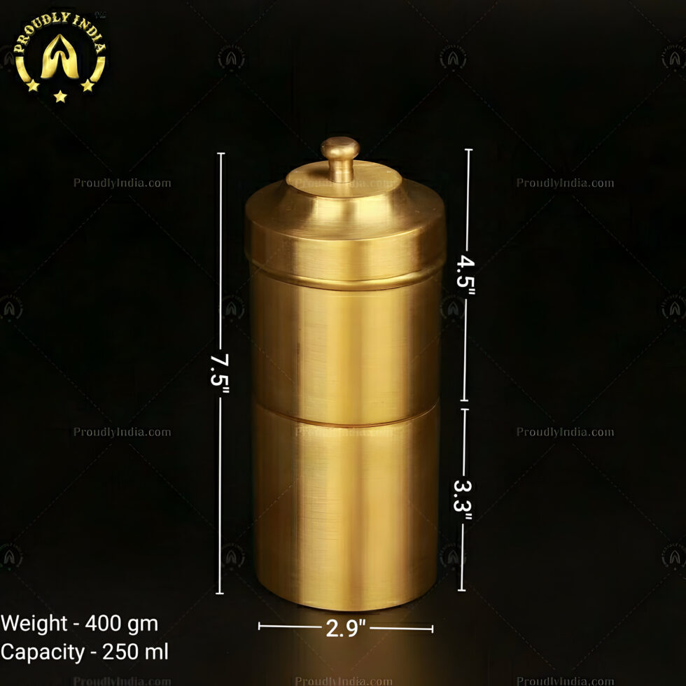 Proudly India South Indian Coffee Maker, 8 Cup Brass Coffee Filter, Brass Filter, 8 Dabara Set