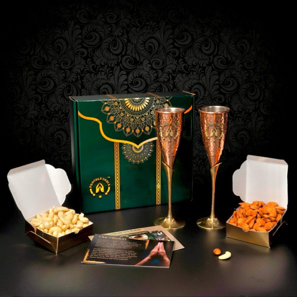 PROUDLY INDIA Wine Glass, Set of 2 Copper Wine Glass, Champagne Glasses, Hammered Glass Set, Copper Flute Wine Glass, Barware