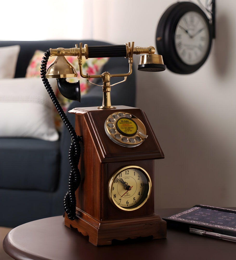 Retro Box Telephone With Clock