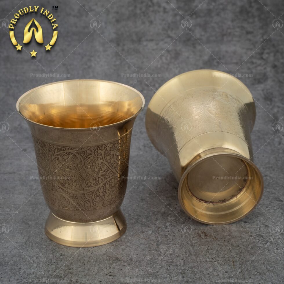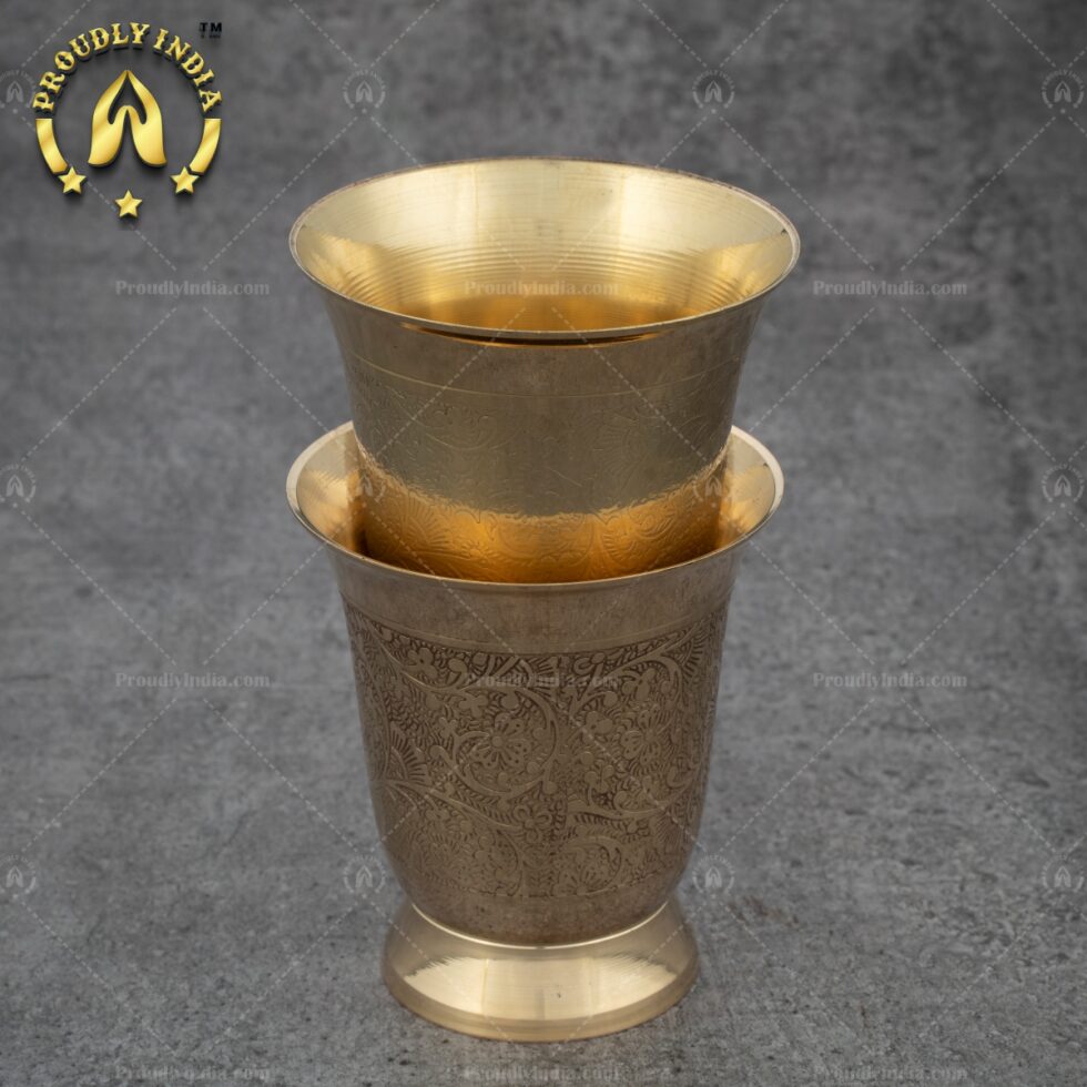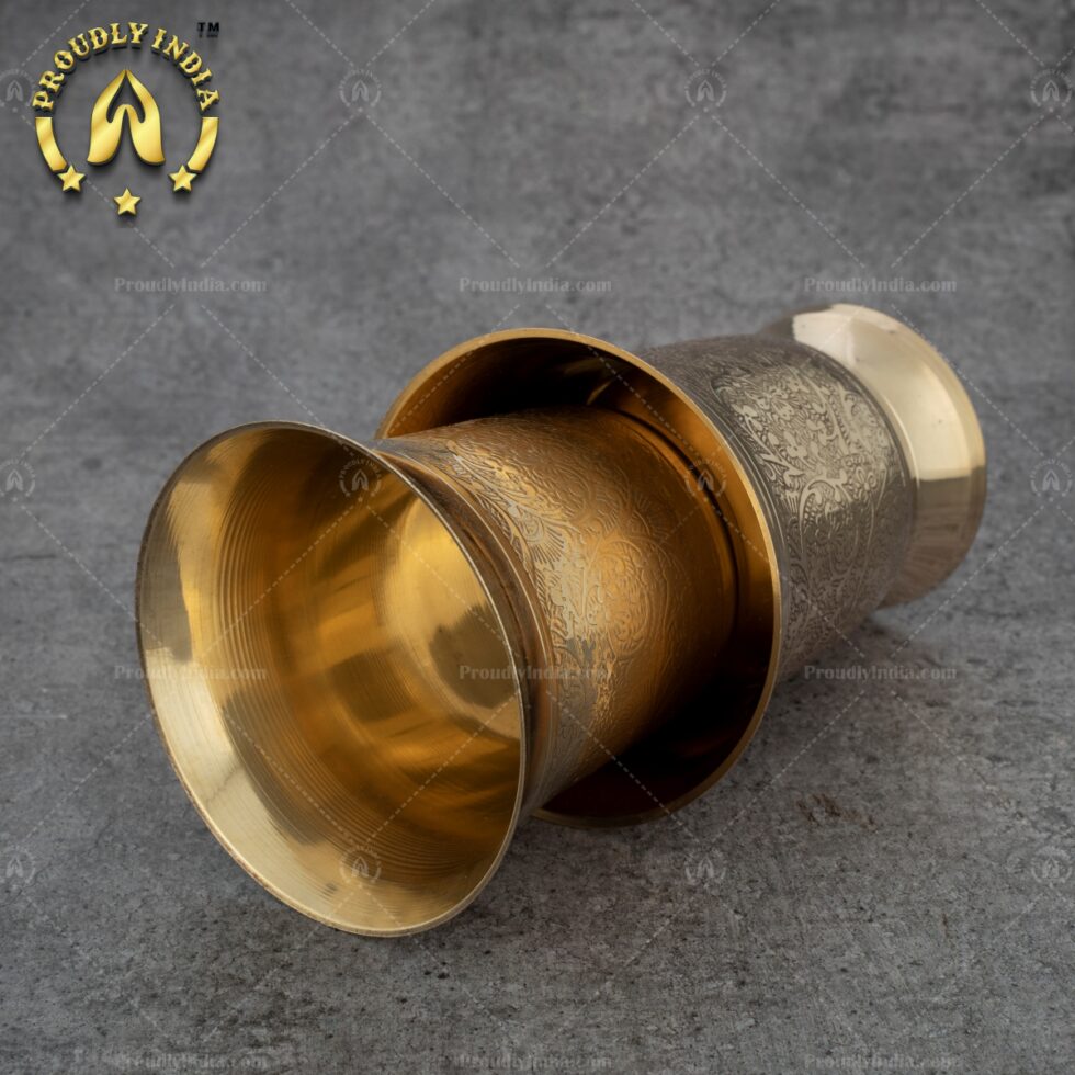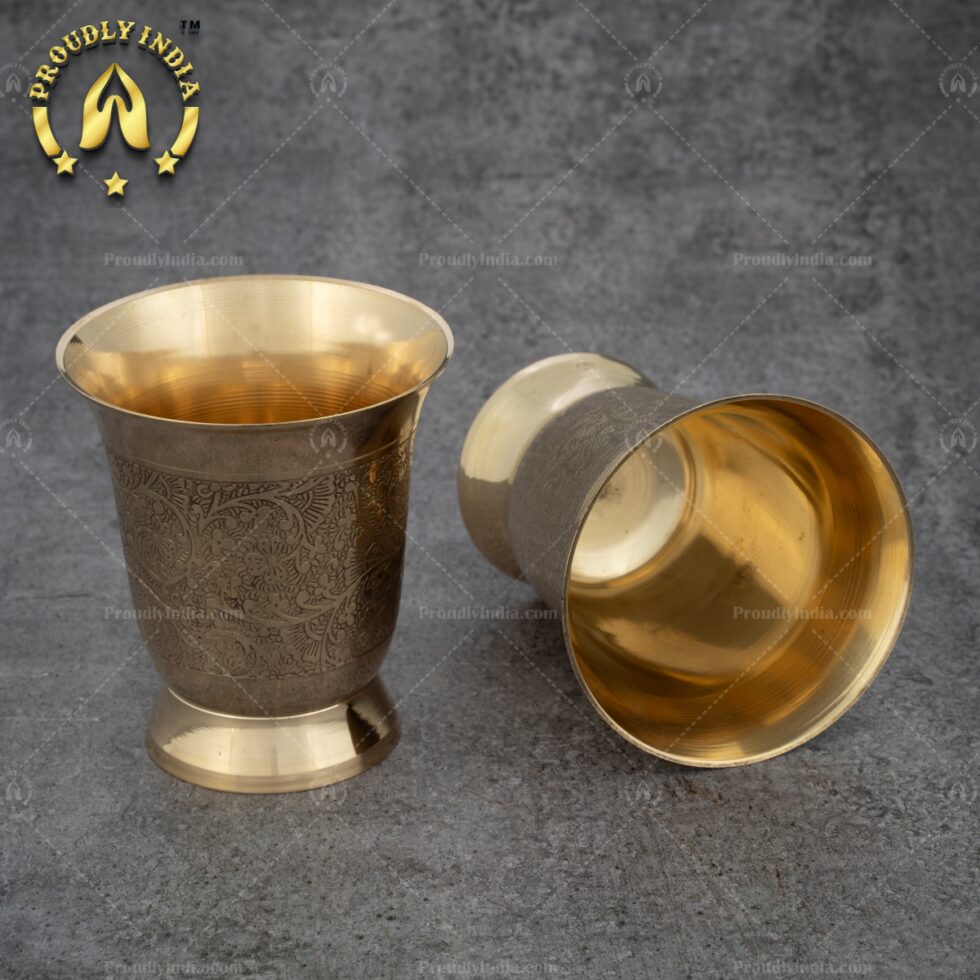 Set of 2 Embossed Heavy Brass Tumbler