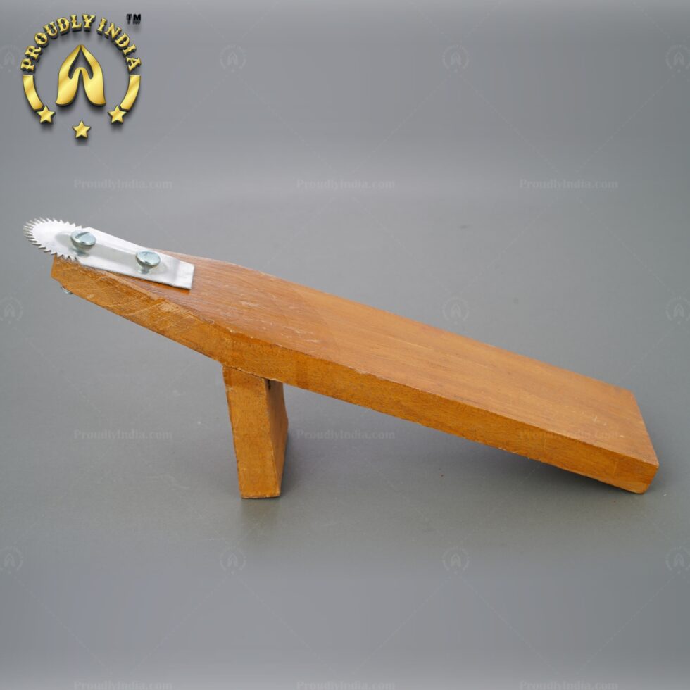 Traditional Iron Vegetable Cutter, Wood Coconut Thiruvi