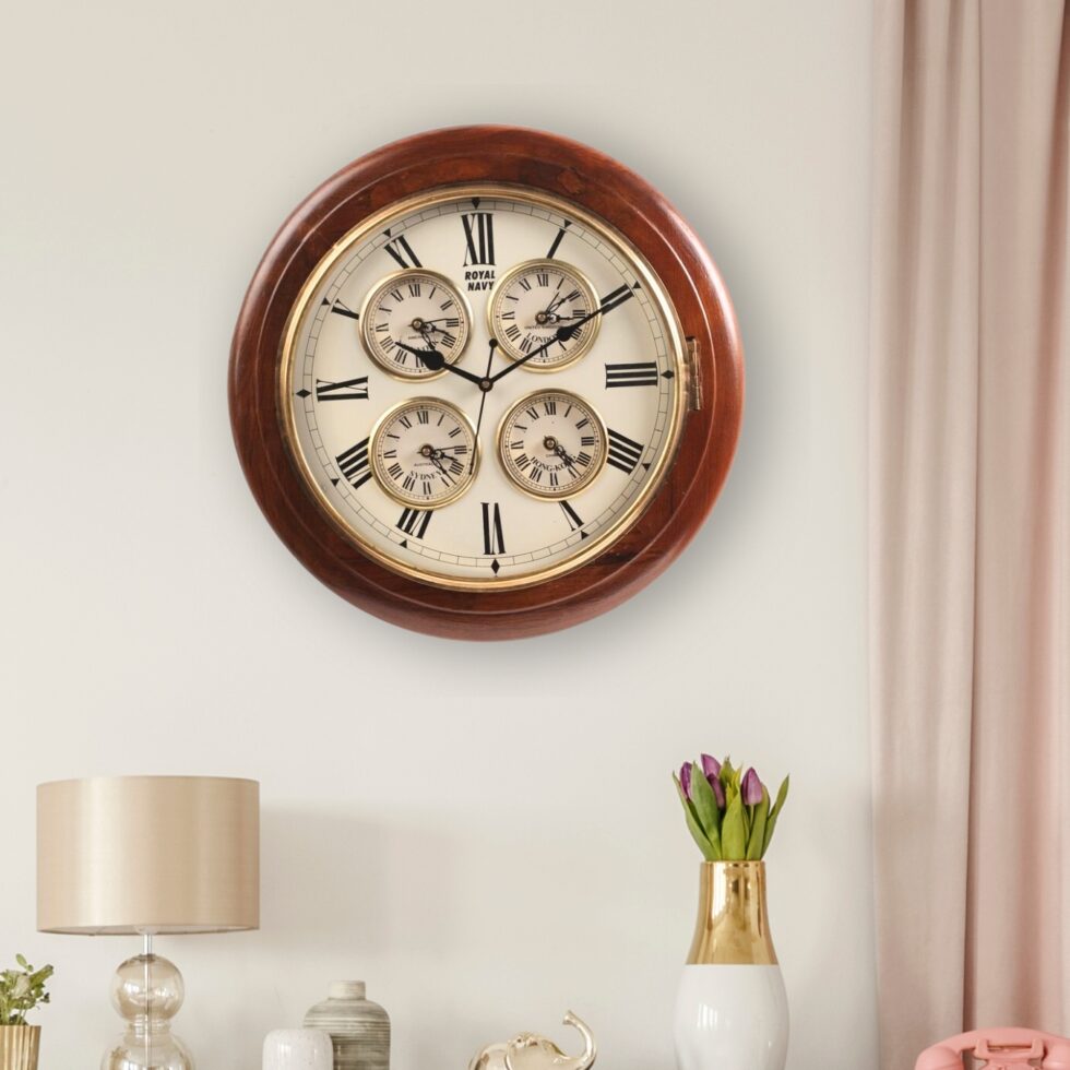 Vintage Style Wall Clock With 4 Embedded Small Clock