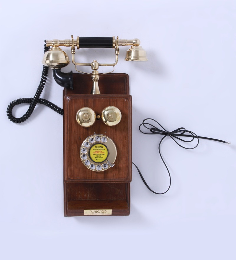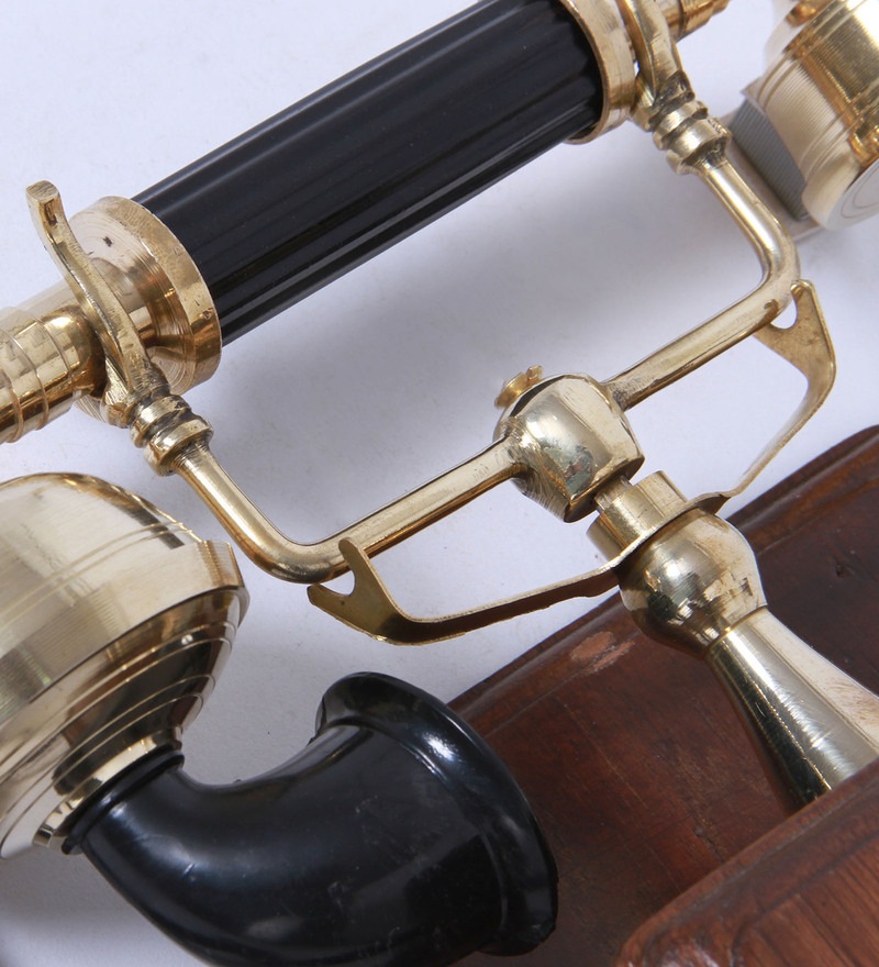 Wood And Brass Retro Telephone With Shelf 299.00