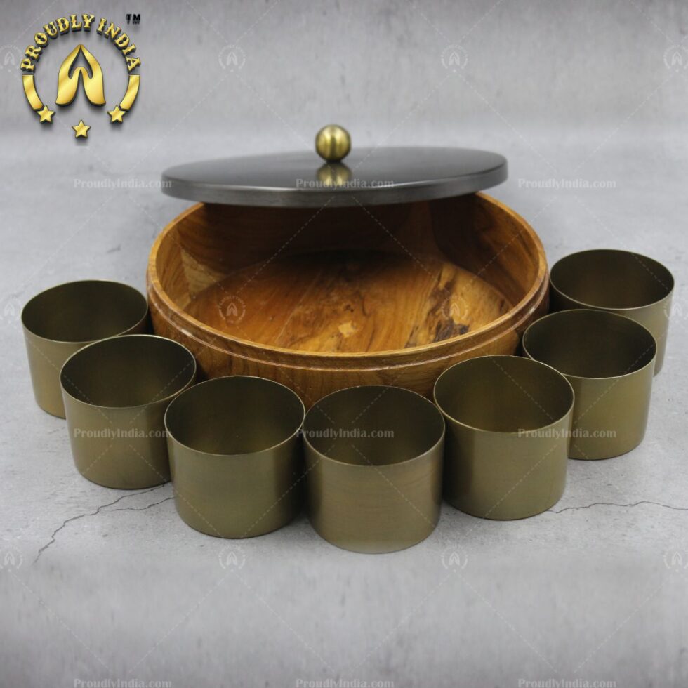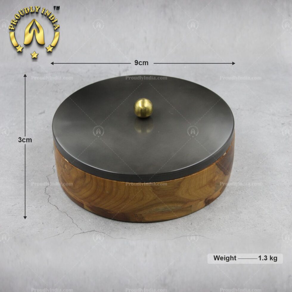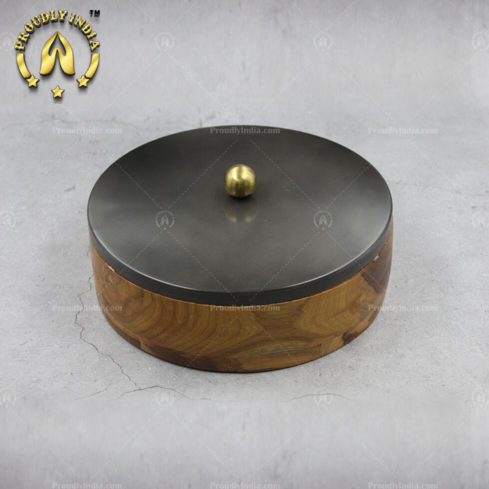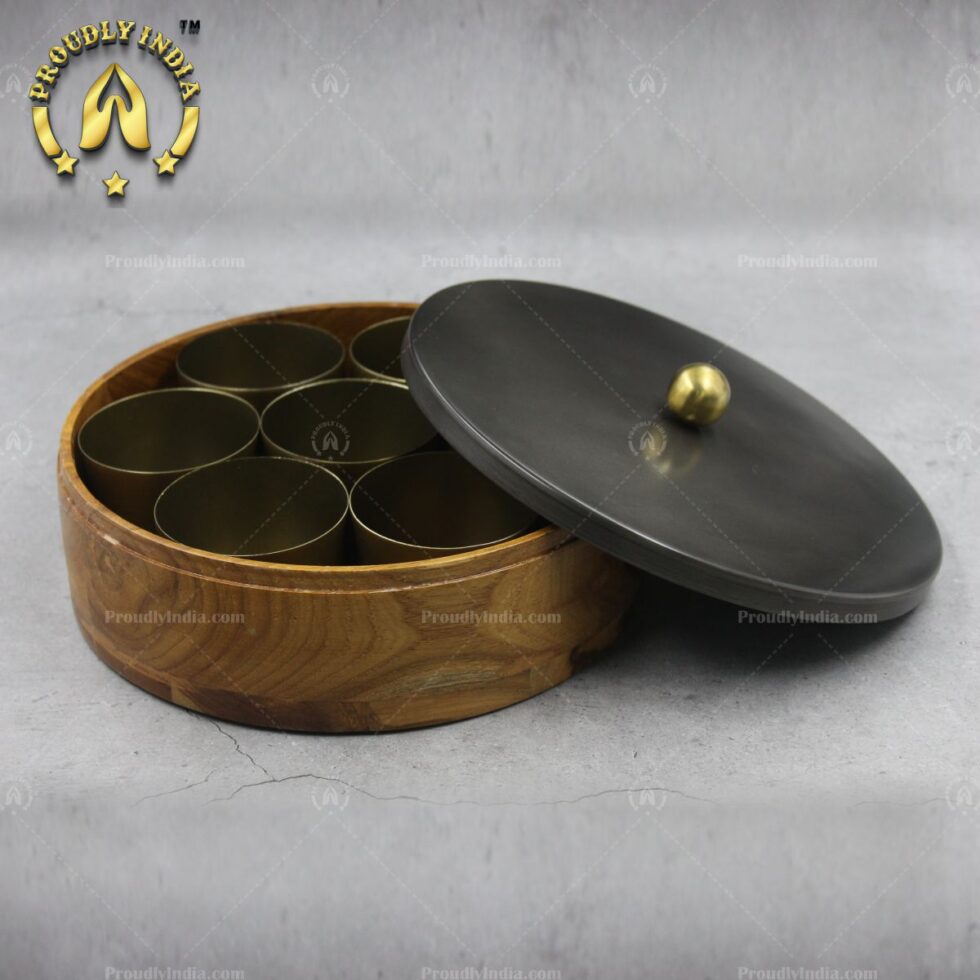 Wooden Masala Box With Metal Lid